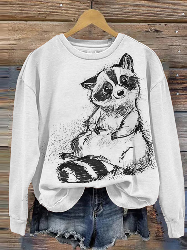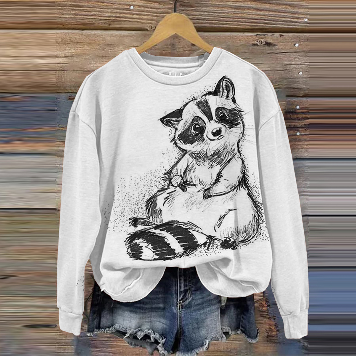Women's Funny Raccoon Sketch Print Casual Sweathshirt