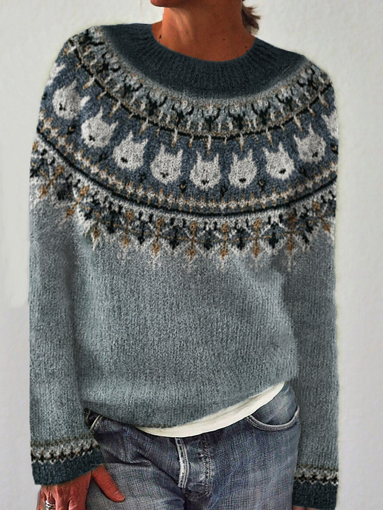 Wild Wolf Inspired Knit Cozy Yoke Sweater