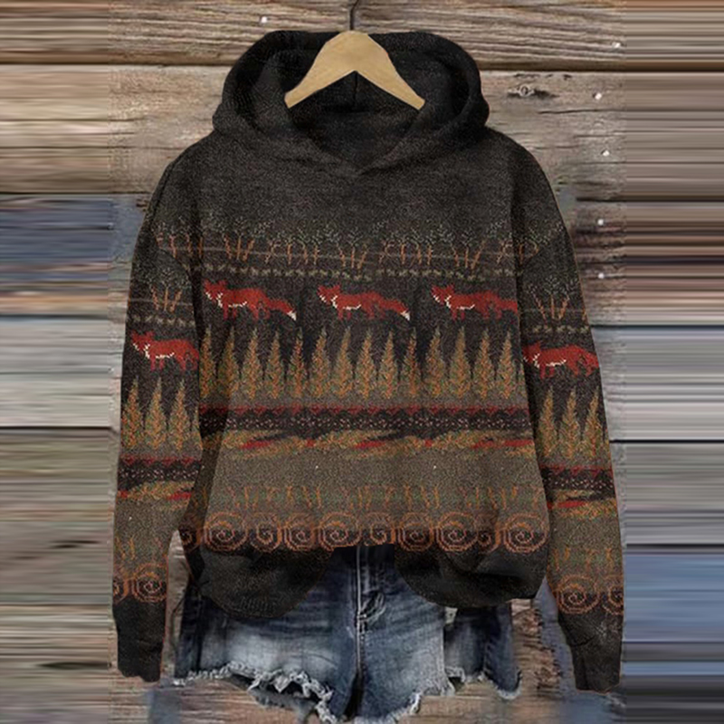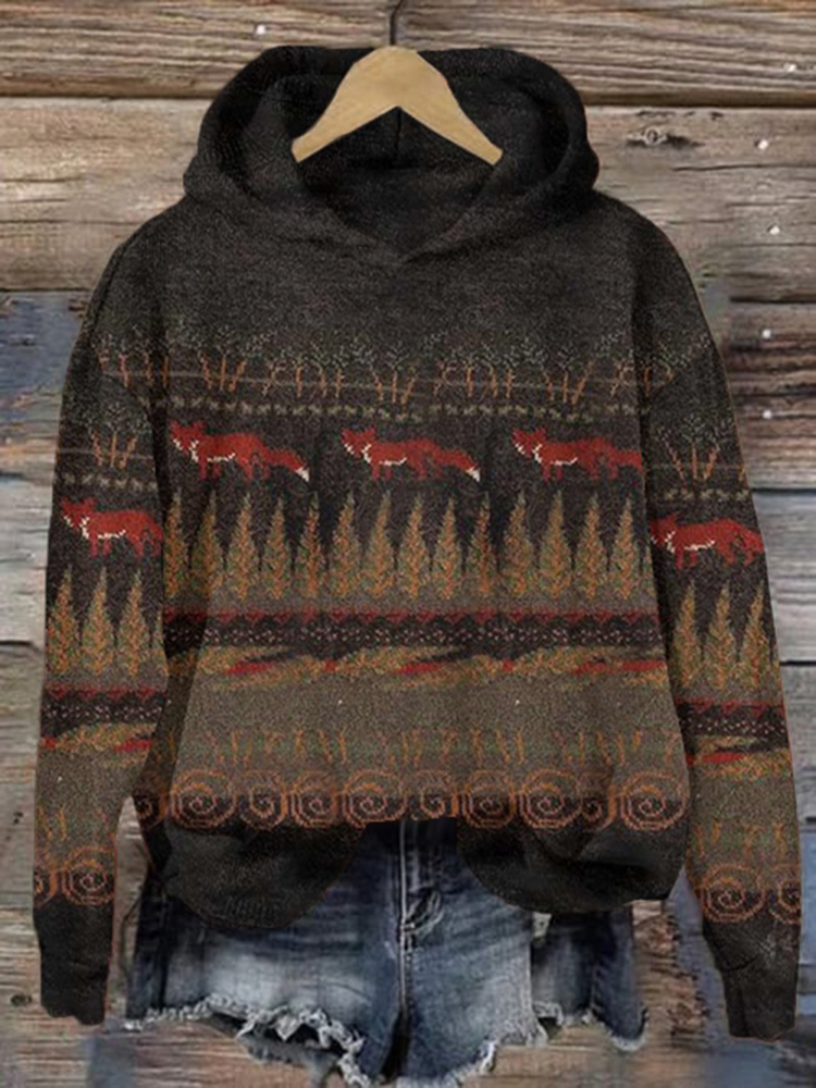 • Women's Winter Forest Fox Art Casual Sweater Hoodie