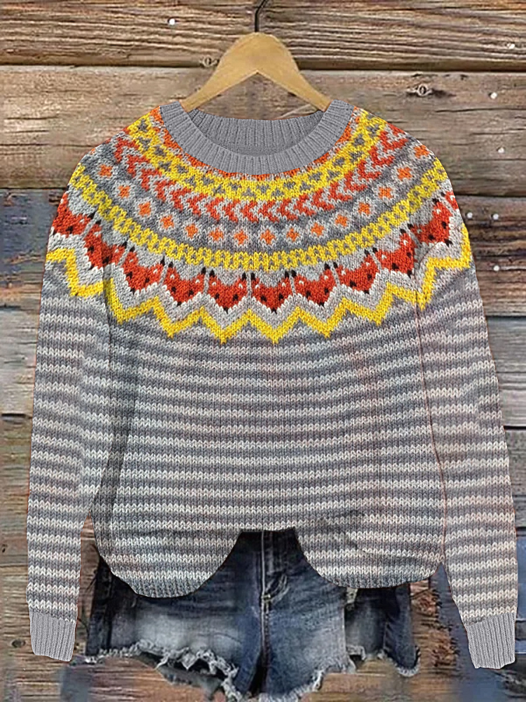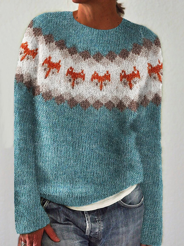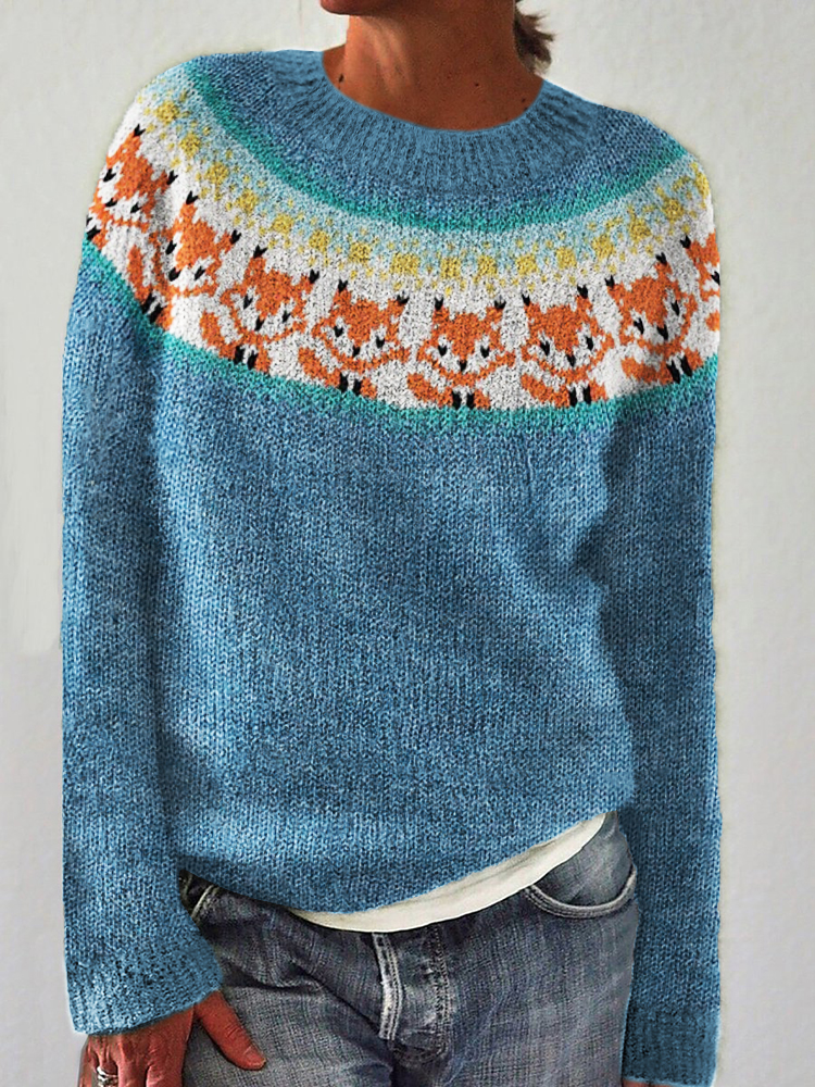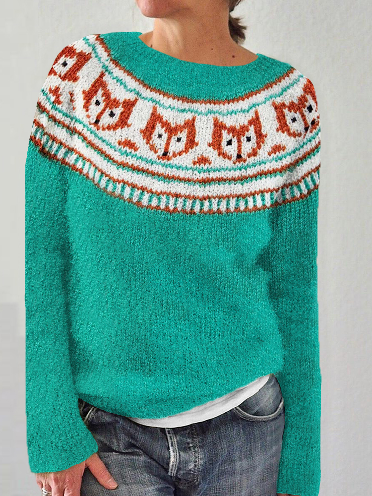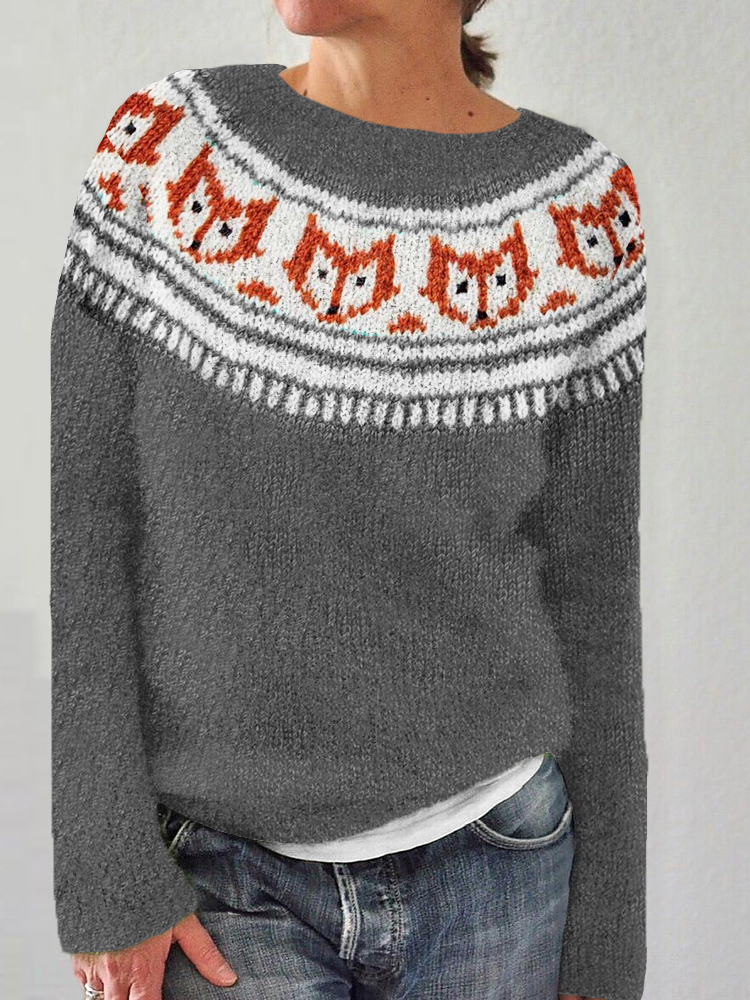 Fox Inspired Isle Pattern Cozy Knit Sweater