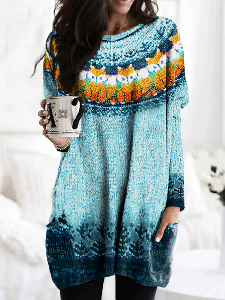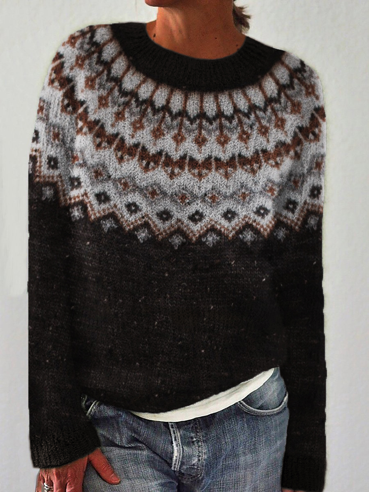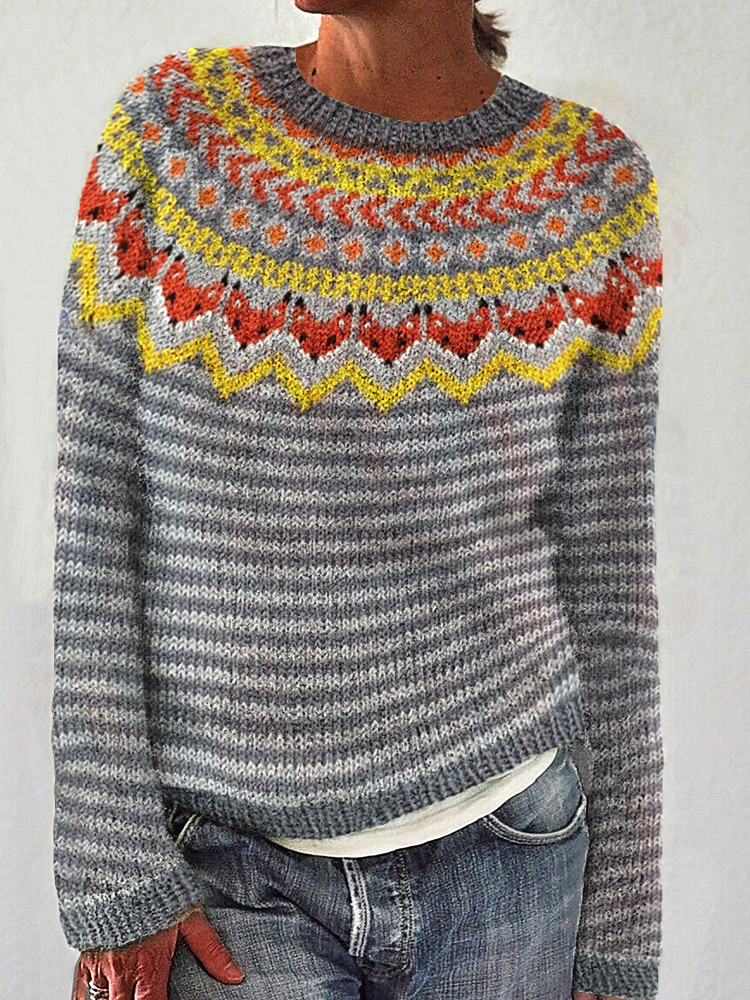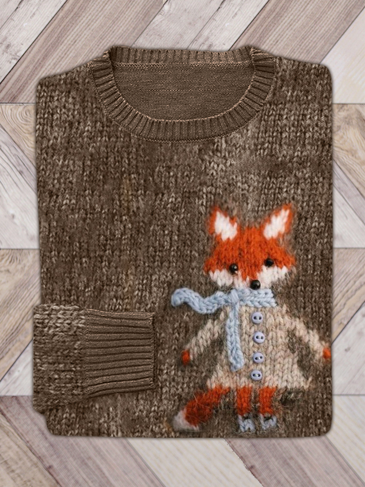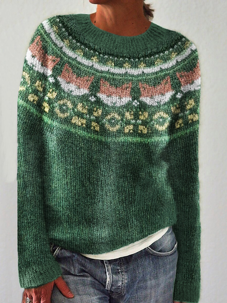 Fox Inspired Isle Pattern Cozy Knit Sweater