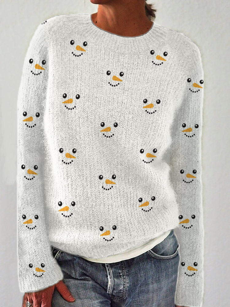 Lovely Snowman Faces Pattern Cozy Knit Sweater
