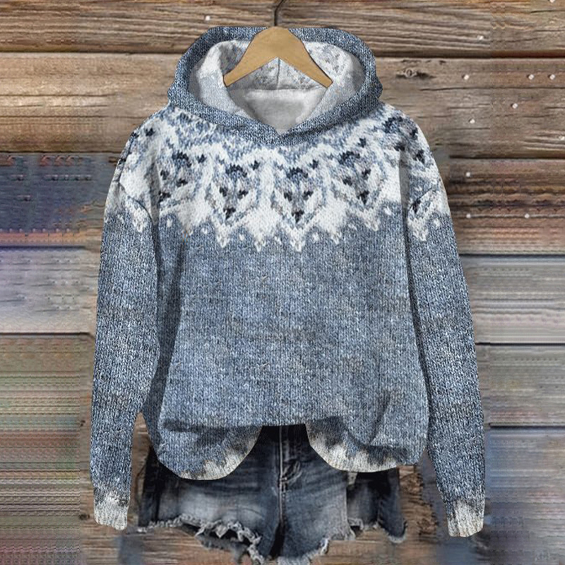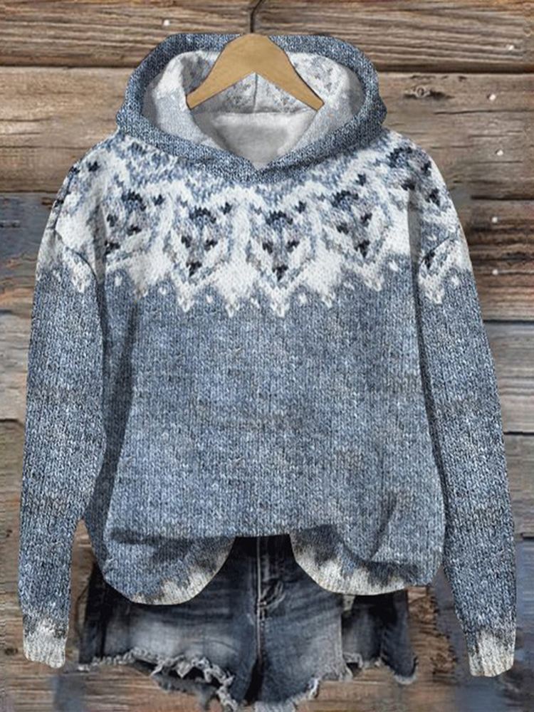 Icelandic Dog Print Long Sleeve Knitted Hooded Sweater