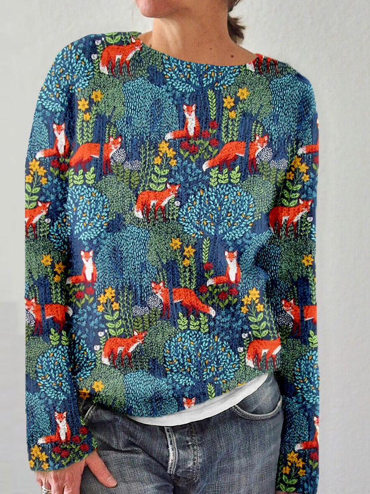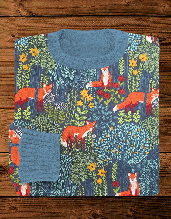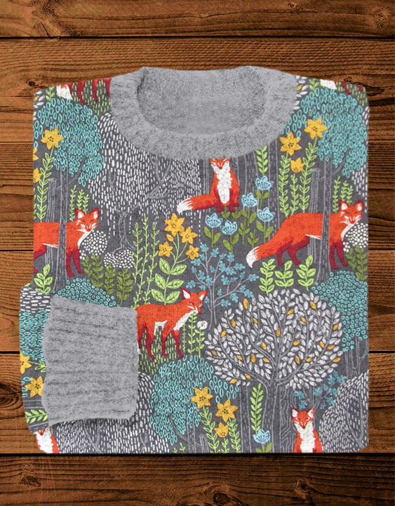 Fox in the Forest Graphic Crew Neck Cozy Sweater