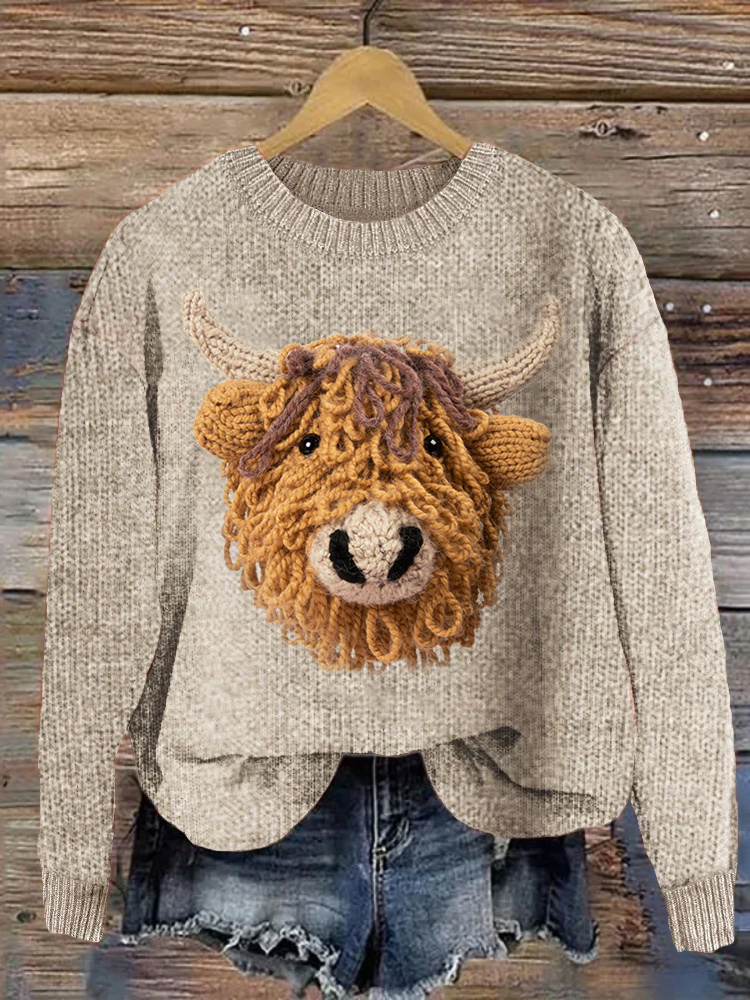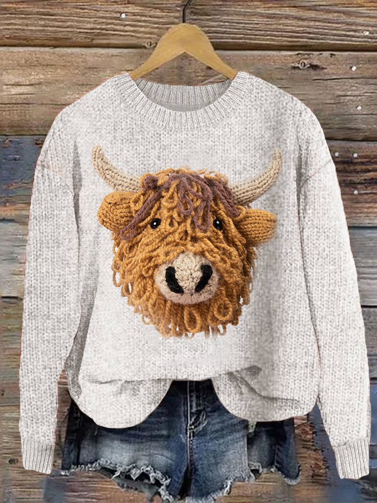 Icelandic Dog Print Long Sleeve Knitted Sweater