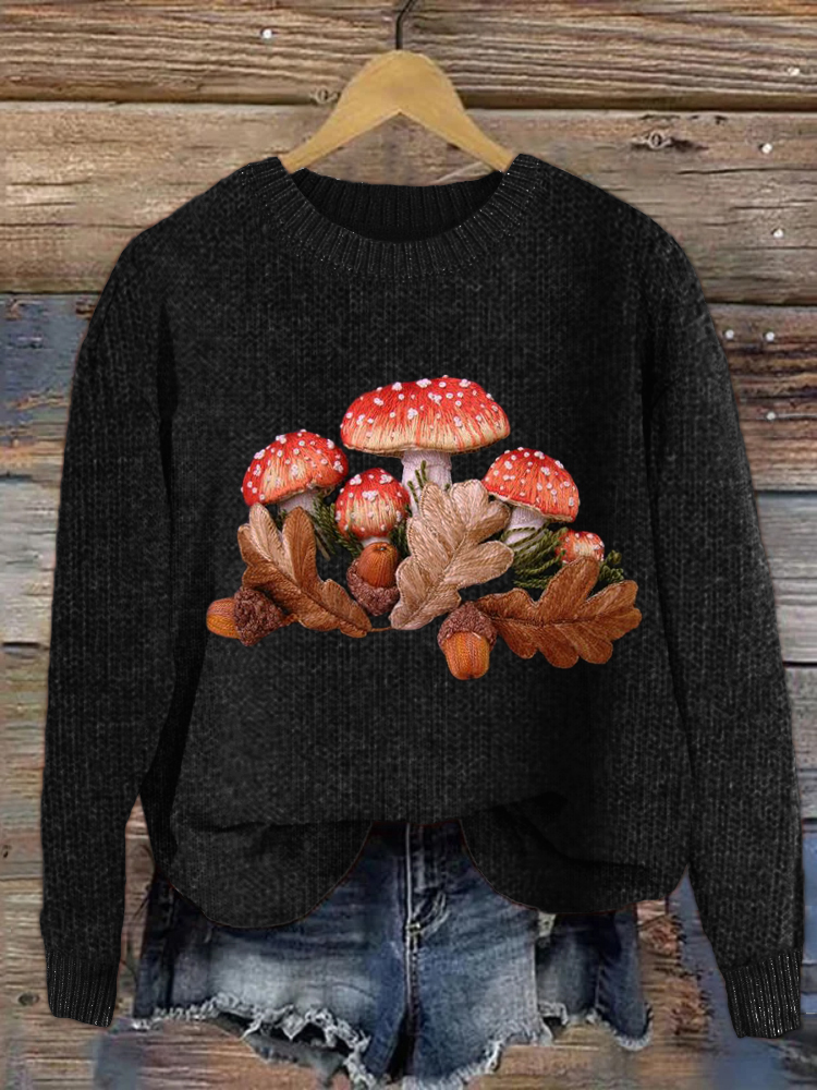 Mushroom & Acorn 3D Embroidery Art Cozy Sweater