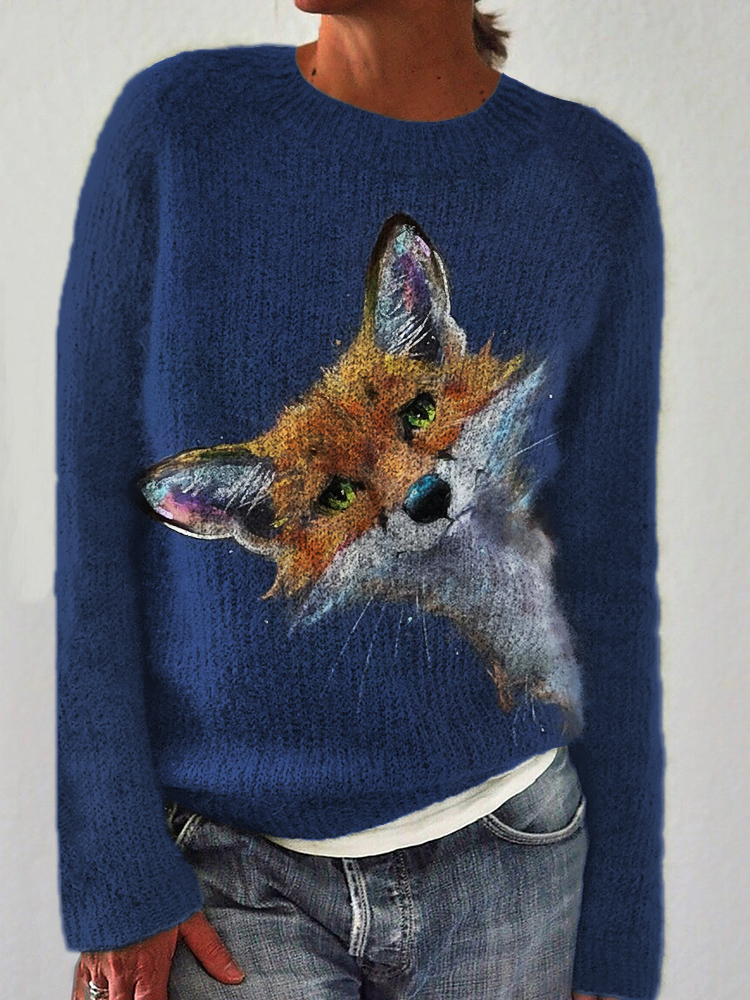 Lovely Fox Face Knit Art Pattern Comfy Sweater