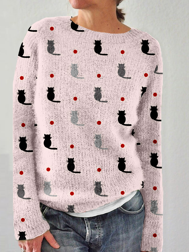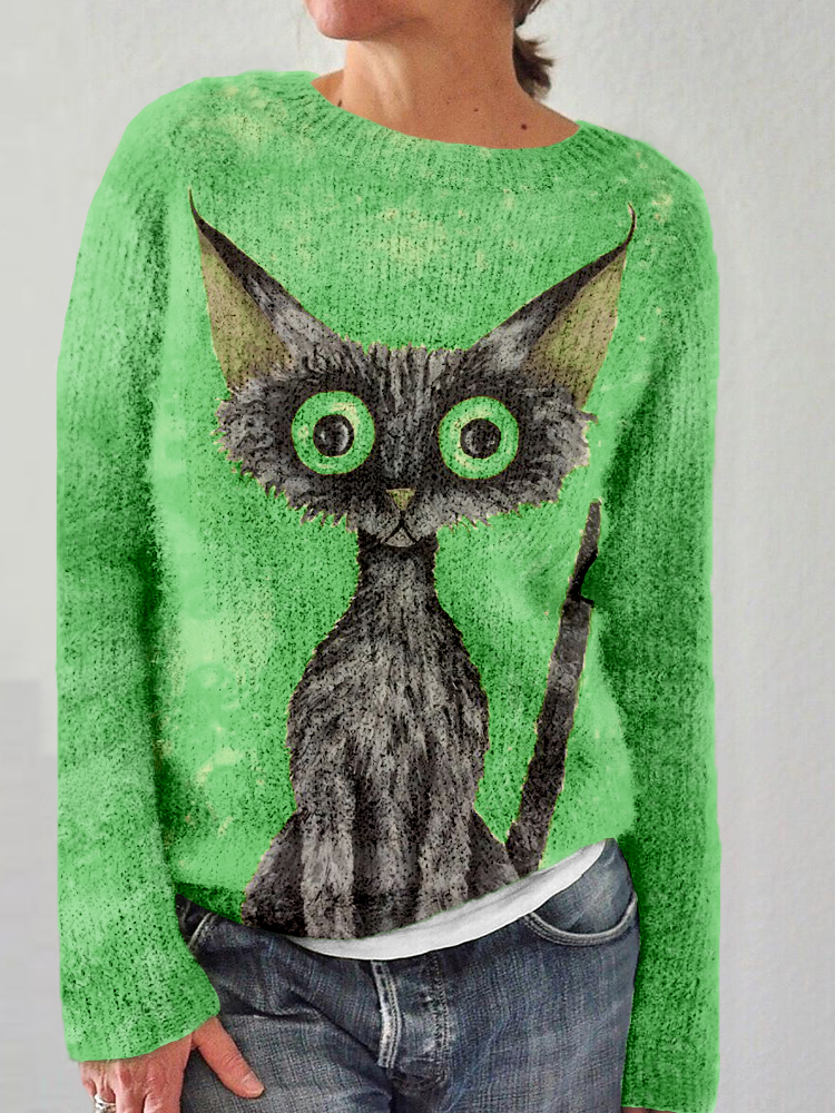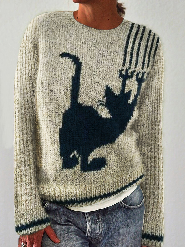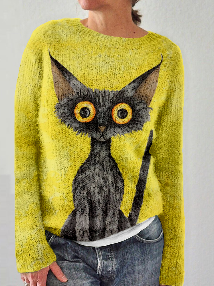Lovely Black Cat Graphic Vintage Cozy Sweater