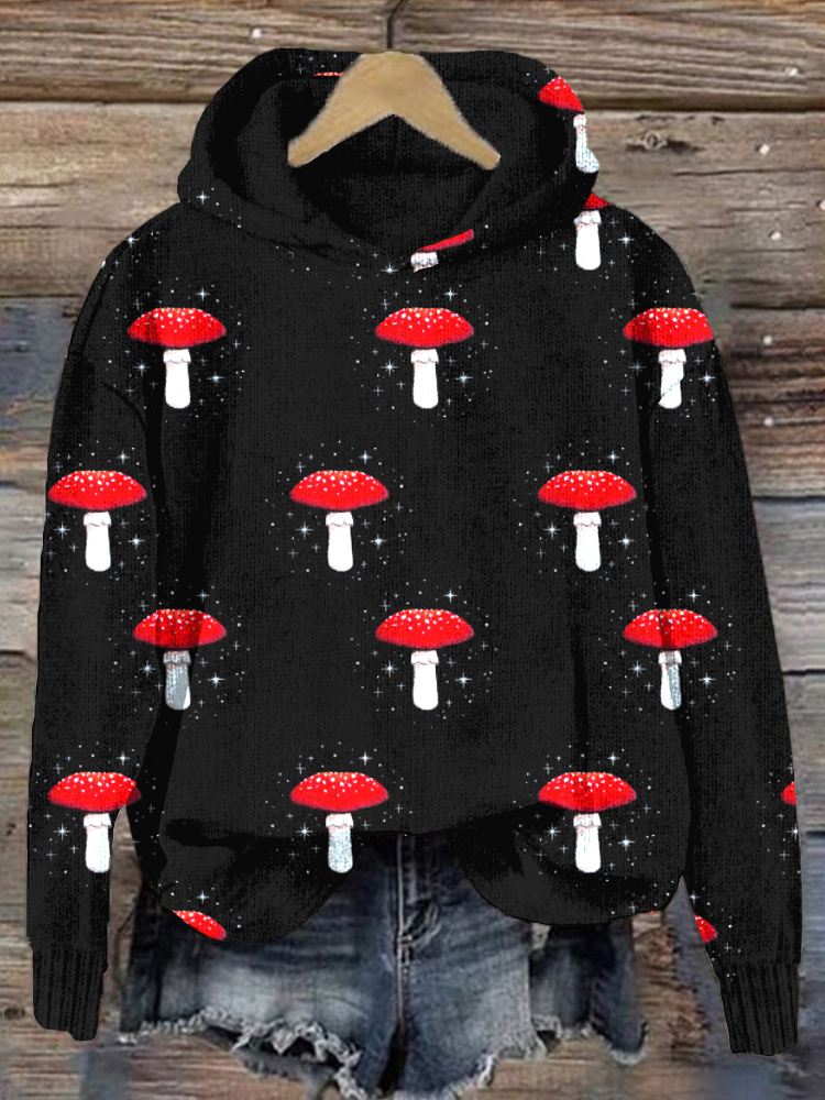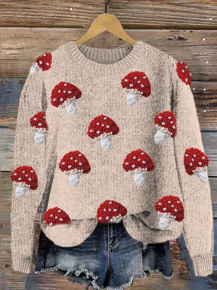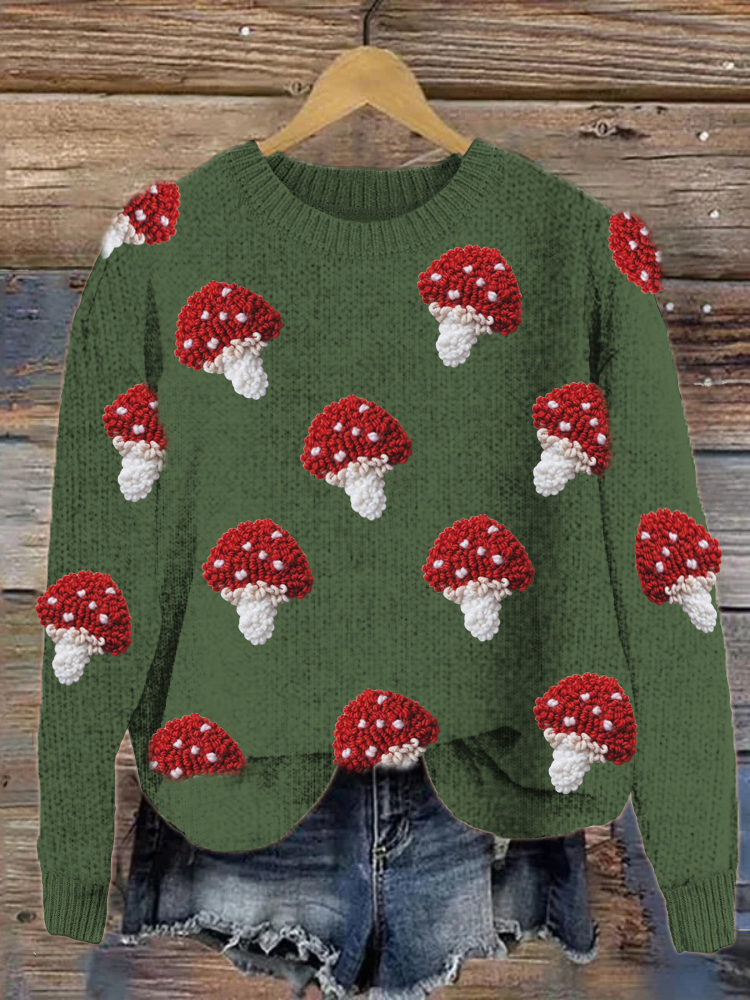 Lovely Mushrooms Embroidery Art Comfy Knit Sweater