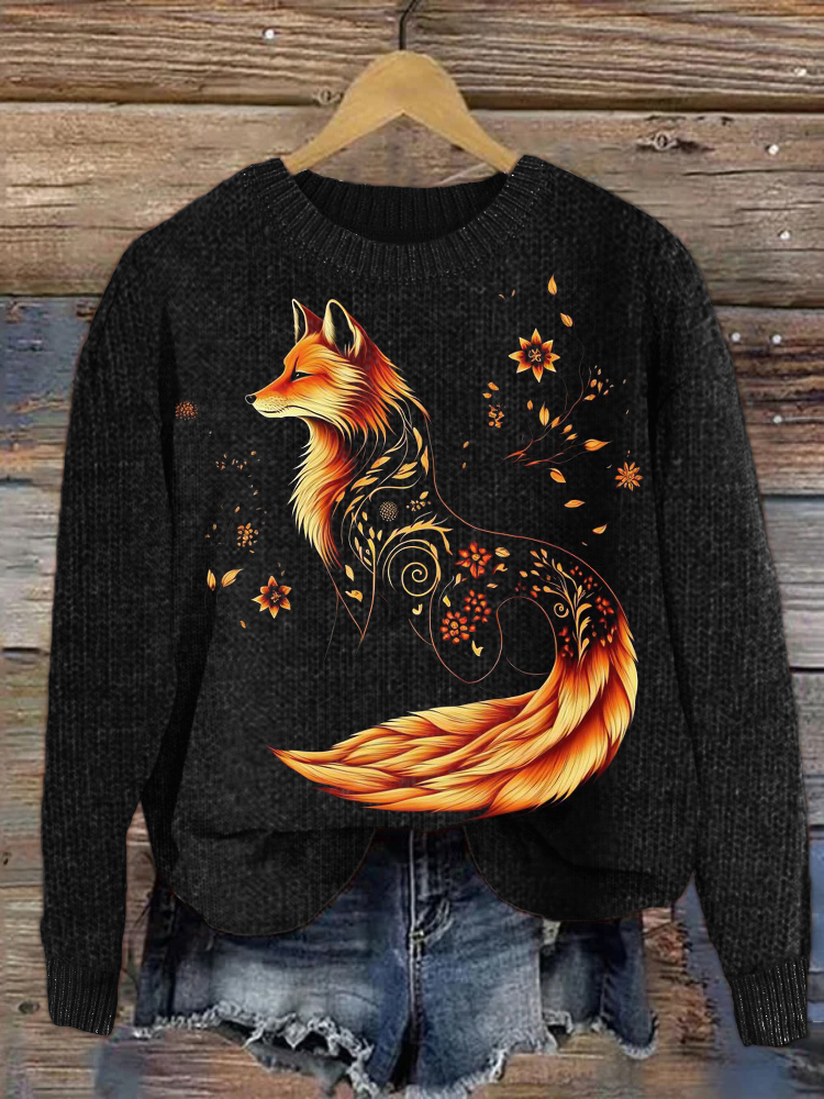 Lovely Fox Inspired Cozy Knit Yoke Sweater