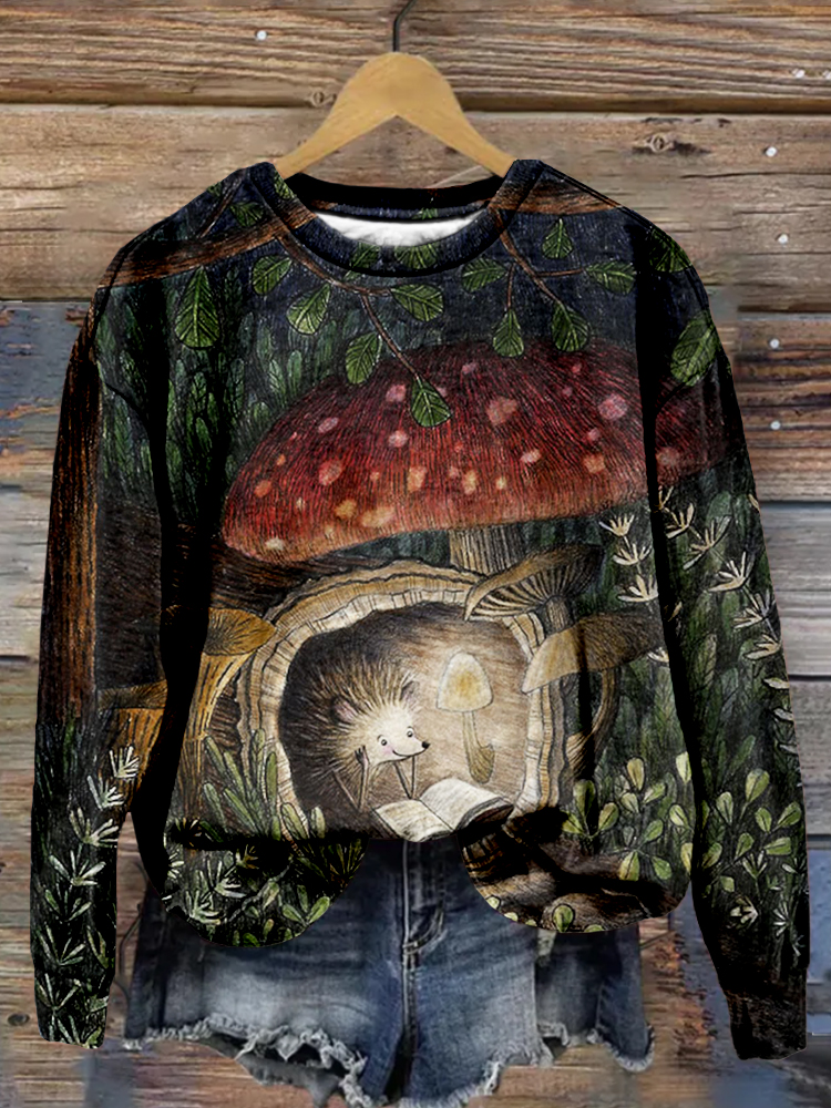 Hedgehog Reading Art Graphic Comfy Sweatshirt