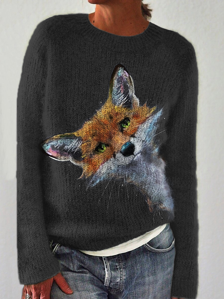 Fuzzy Peeking Fox Painting Cozy Knit Sweater