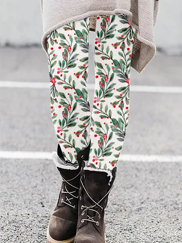 Mistletoe and Red Berries Christmas Cozy Leggings