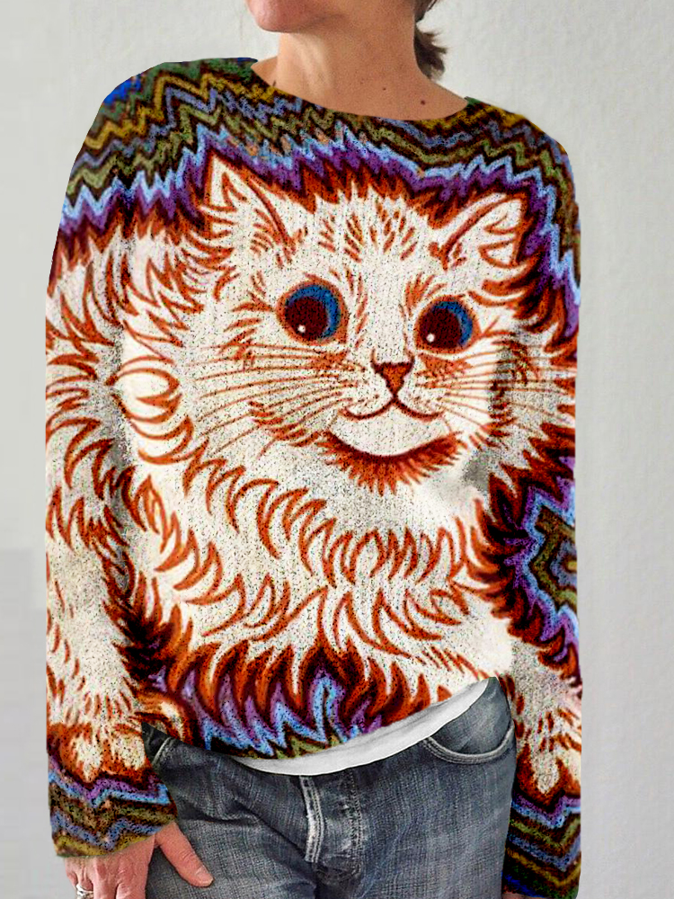 Kaleidoscope Cats Art Pattern Cozy Sweater