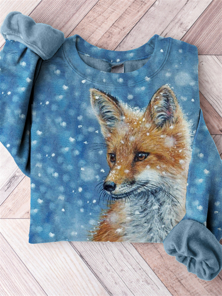 Fuzzy Fox in the Snow Art Comfy Sweatshirt