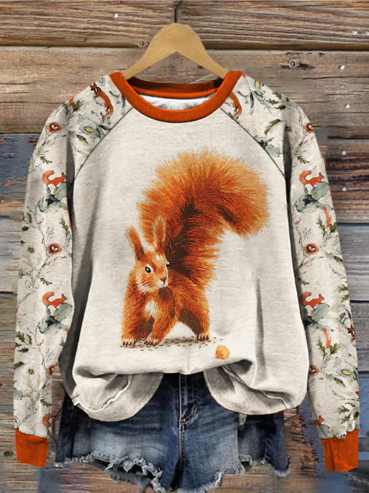 Into The Woods Squirrel Embroidery Art Vintage Sweatshirt