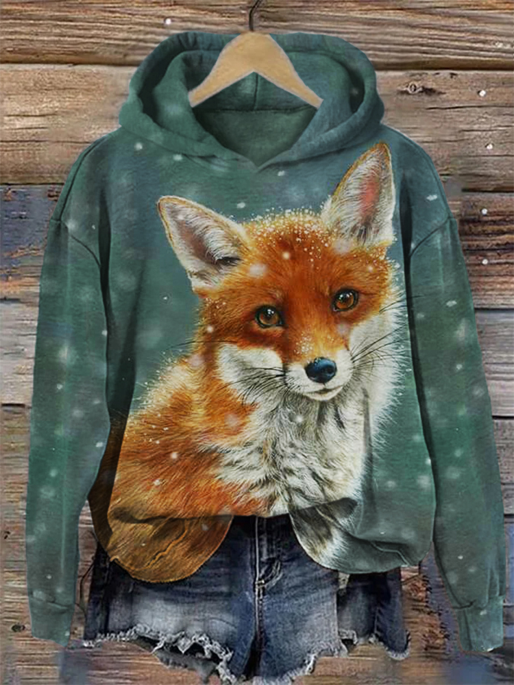 Fuzzy Fox in the Snow Art Cozy Hoodie