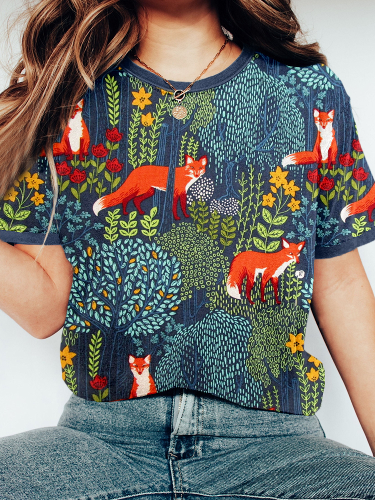 Fox in the Forest Graphic Vintage Cozy T Shirt
