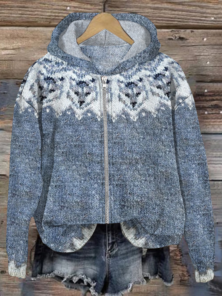 Icelandic Fox Ethnic Print Long Sleeve Knitted Cardigan