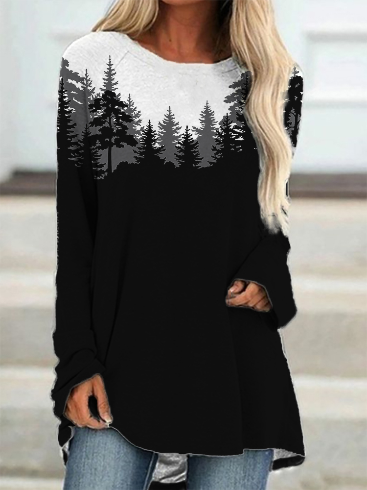 Landscape Forest Crew Neck Long Sleeve T Shirt