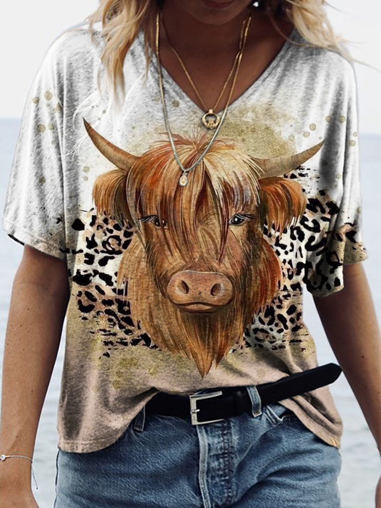 Lovely Cow Leopard Bleached Short Sleeve T Shirt