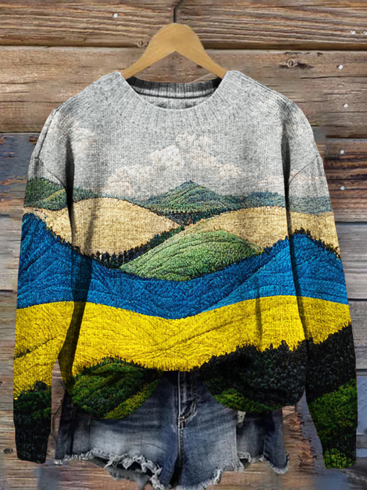 Gorgeous Landscape Graphic Cozy Knit Sweater