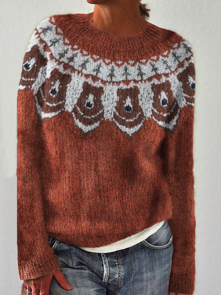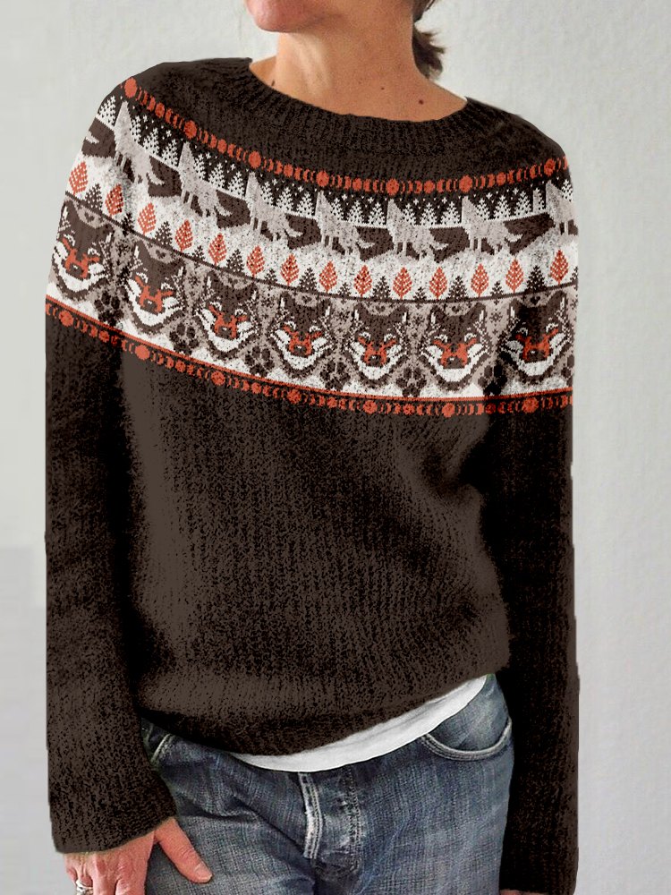 Fair Isle Knitting Wolf Pattern Comfy Sweater