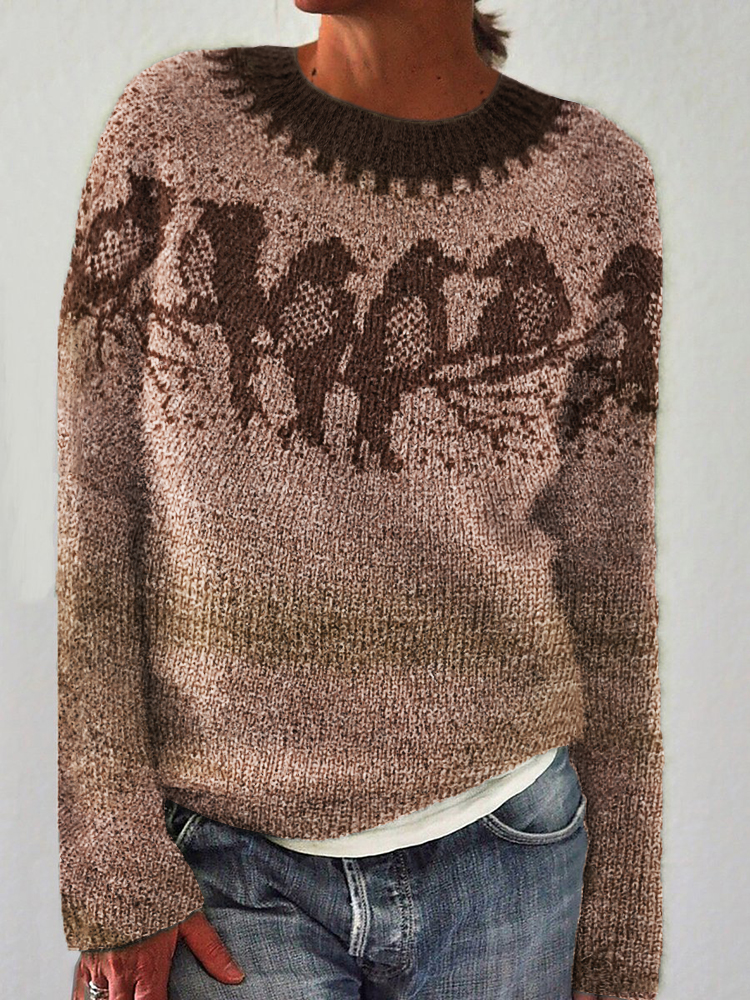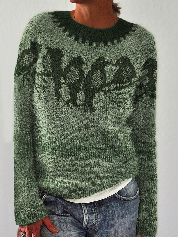Forest Birds Inspired Cozy Knit Yoke Sweater