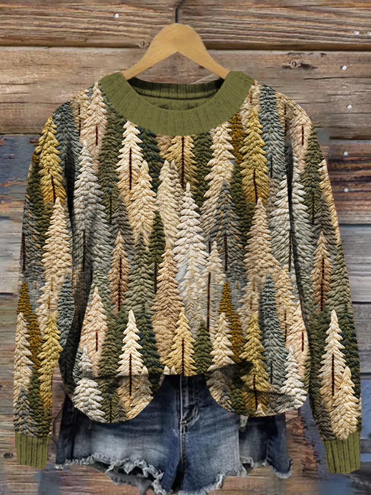 Forest Embroidery Art Vintage Cozy Knit Sweater