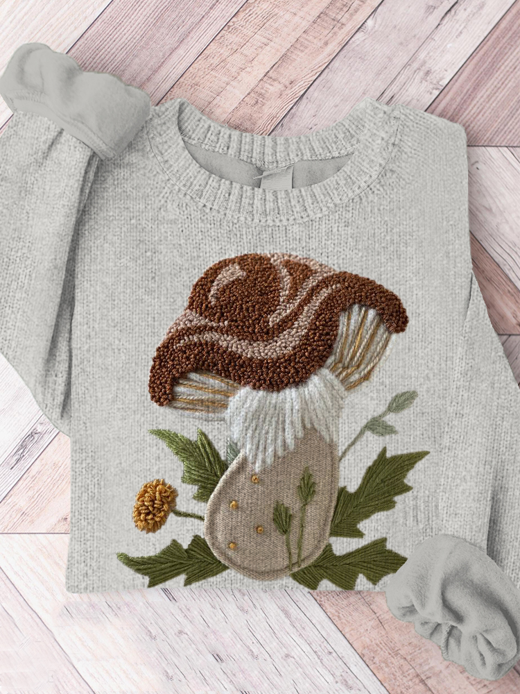 Embroidered Wild Mushrooms Graphic Cozy Knit Sweater