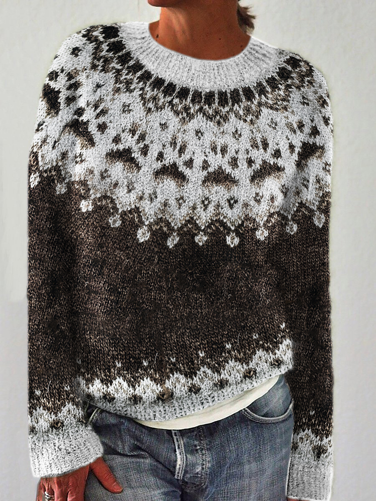 Forest Paw Prints Inspired Cozy Knit Isle Sweater