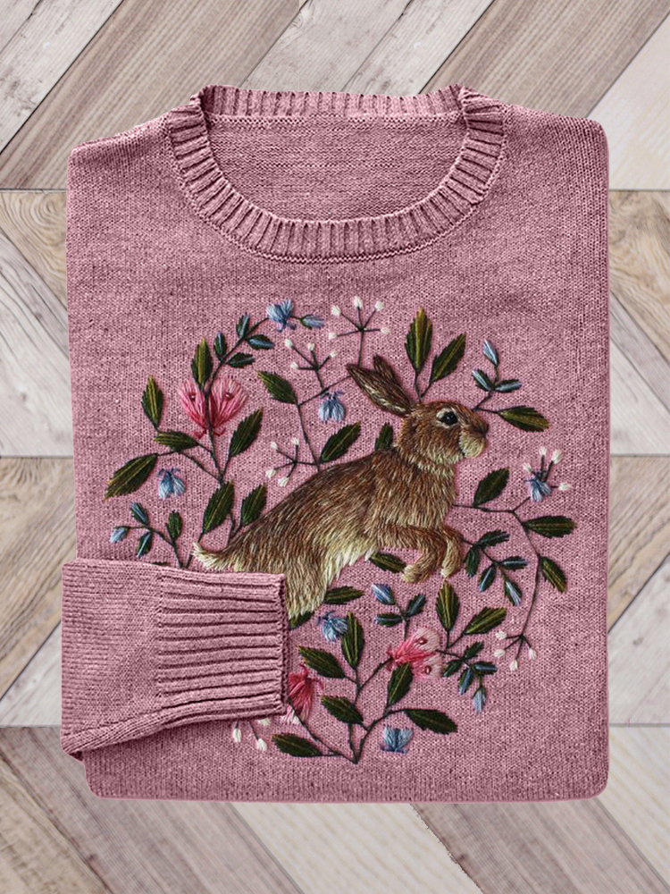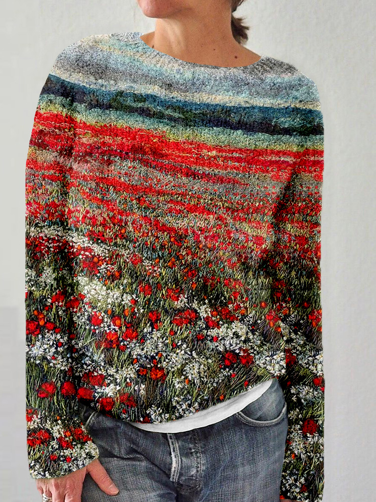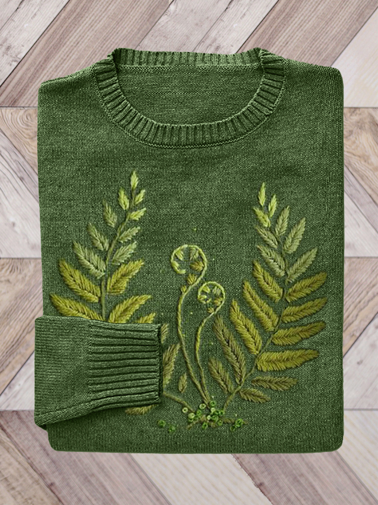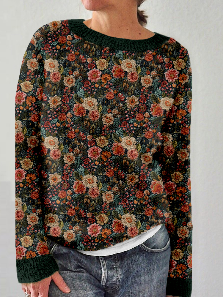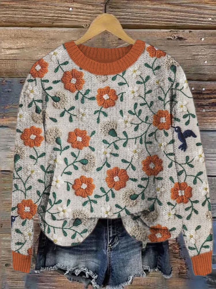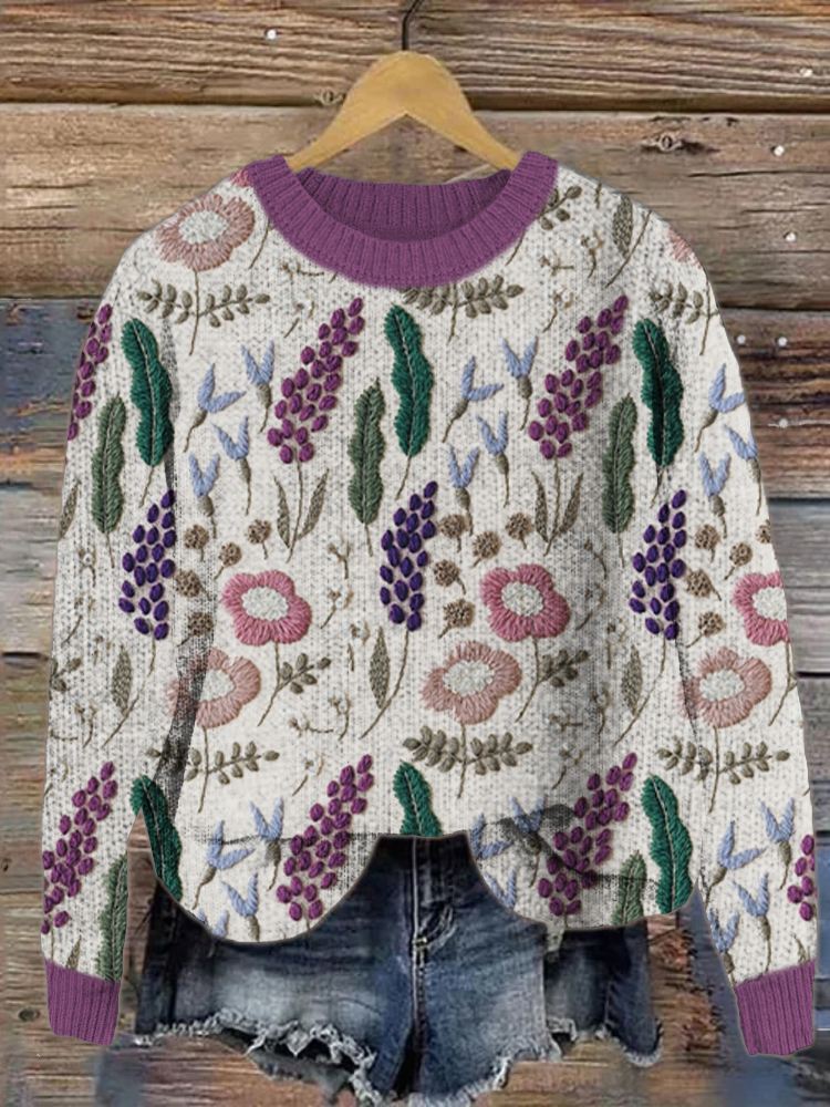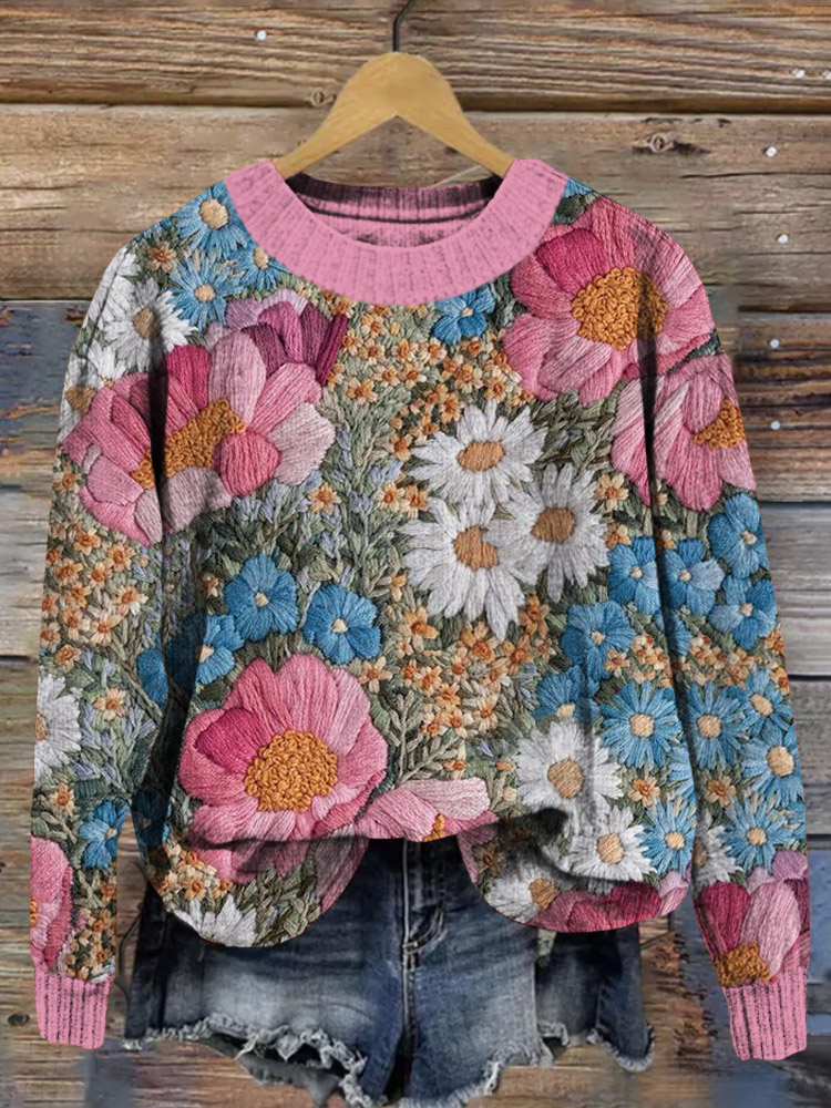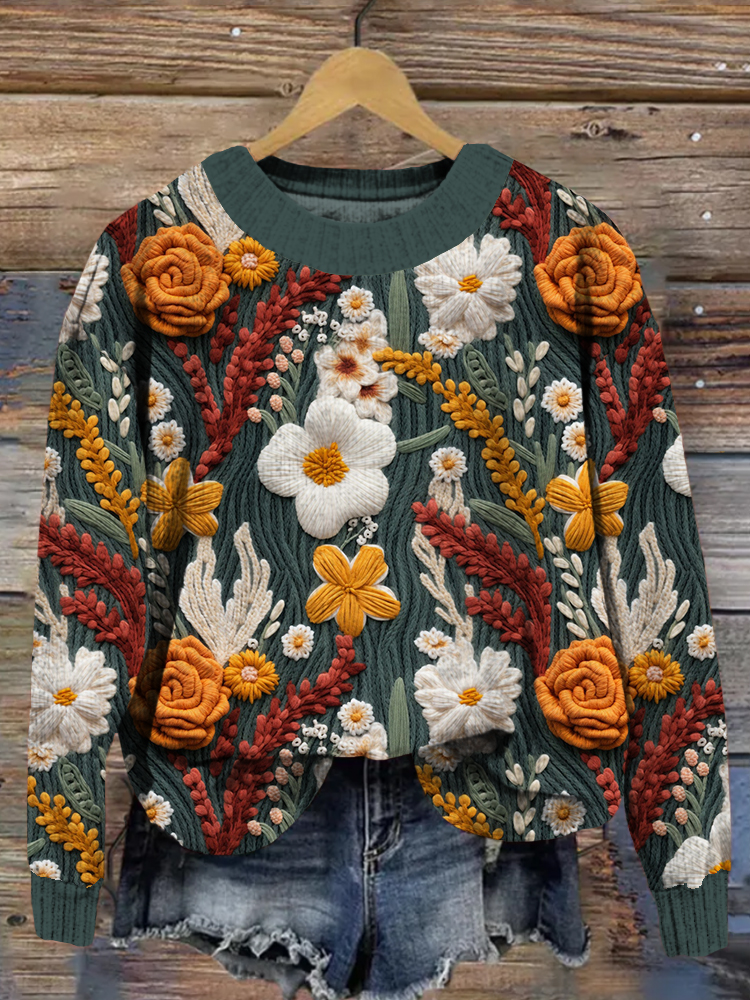 Flower Landscape Embroidery Art Cozy Knit Sweater