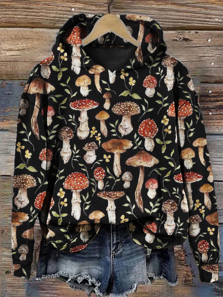Forest Mushroom Floral Pattern Cozy Hoodie