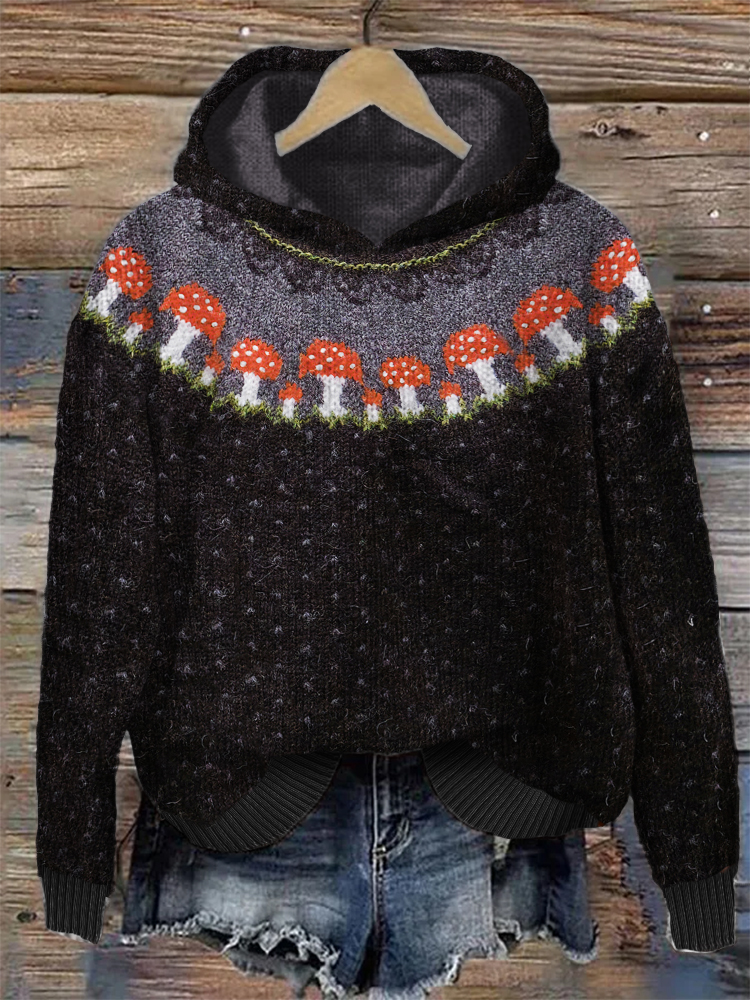 Forest Mushroom Inspired Cozy Knit Hoodie