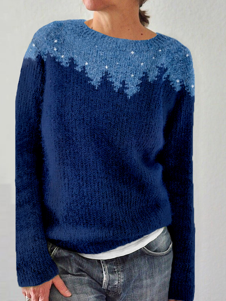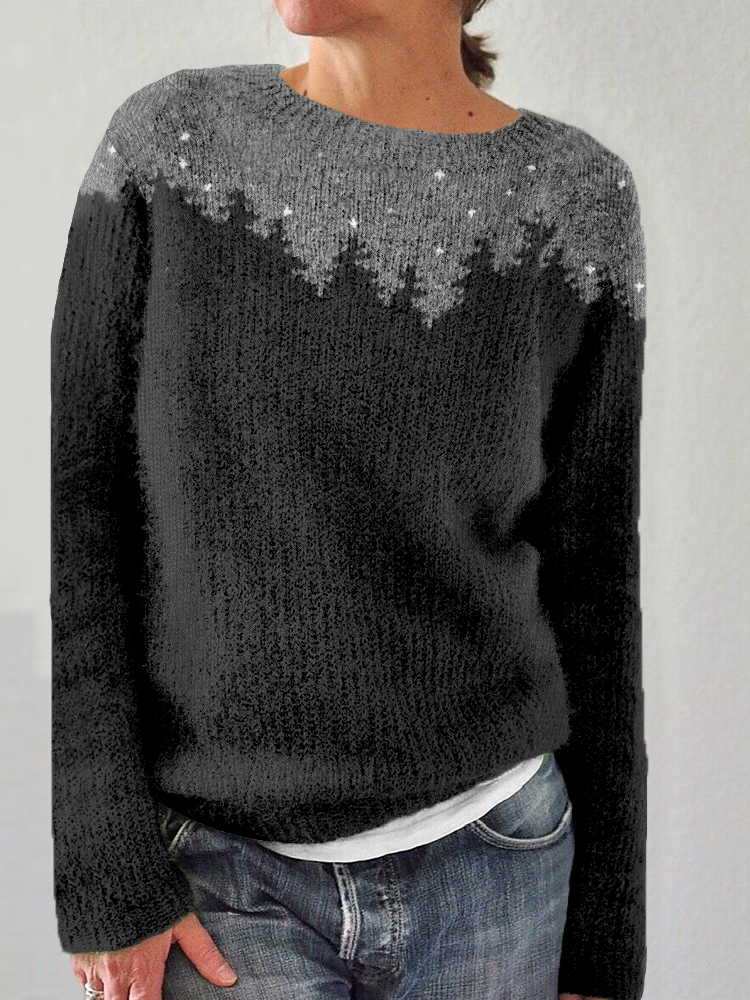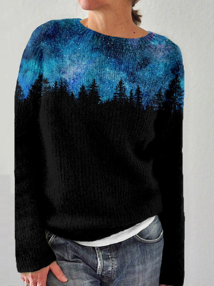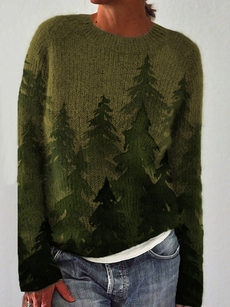 Forest Silhouette Contrast Color Cozy Knit Sweater