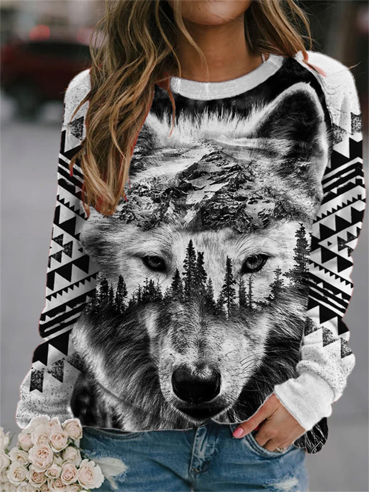 Forest Wolf Art Aztec Patchwork Sweatshirt
