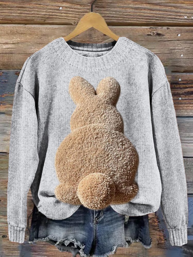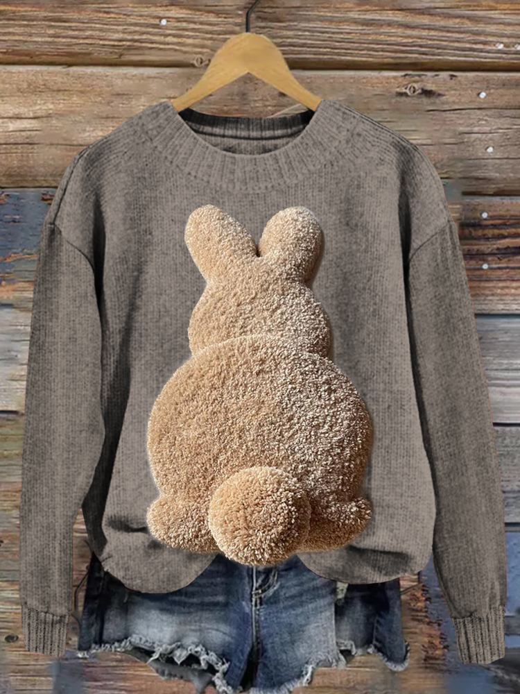 Fluffy Bunny Crew Neck Vintage Cozy Sweater