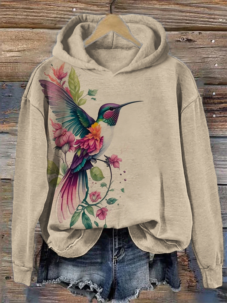 Elegant Hummingbird Floral Art Cozy Hoodie