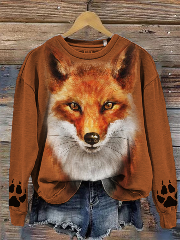 Forest Fox Art Paw Print Comfy Sweatshirt