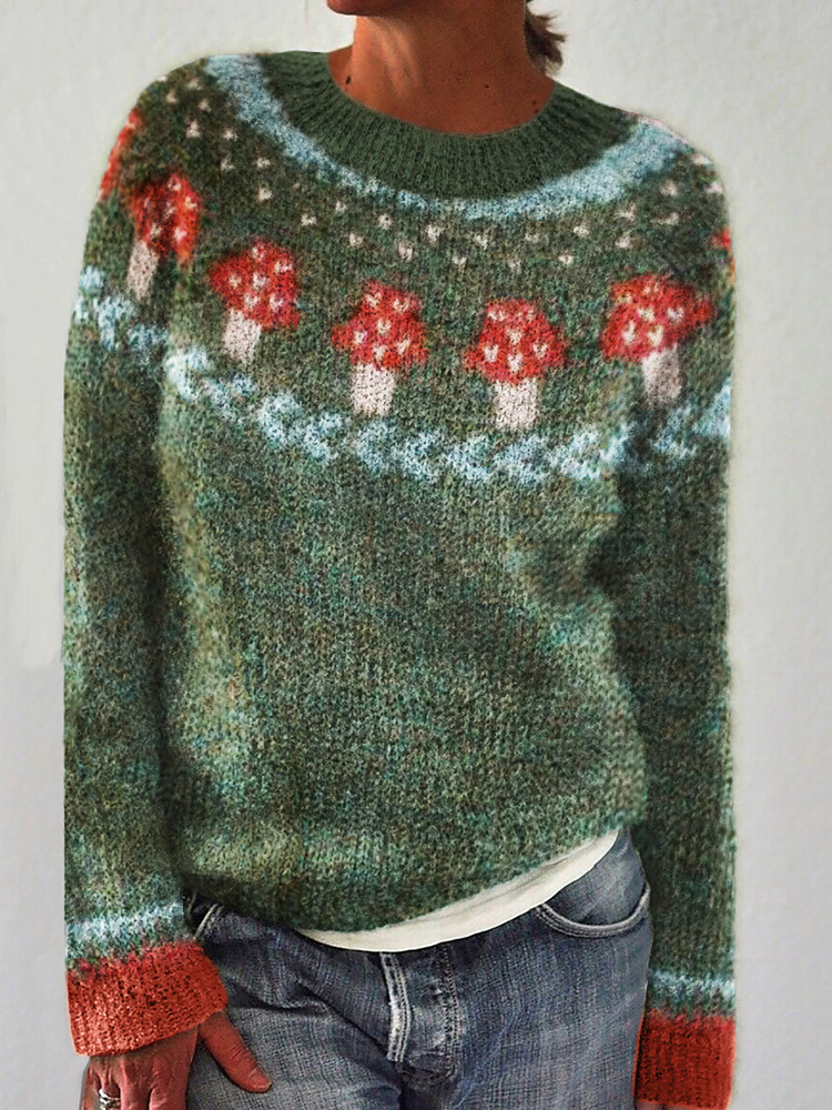 Forest Mushroom Inspired Cozy Knit Yoke Sweater