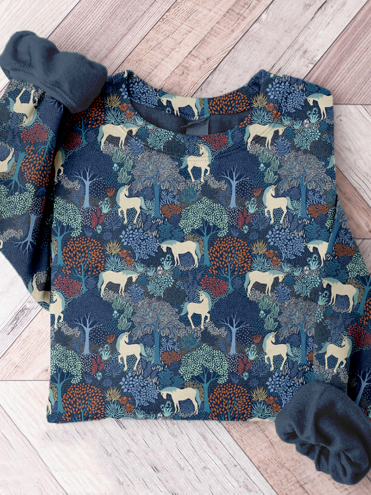 Enchanted Forest Unicorns in the Magic Woods Comfy Sweatshirt