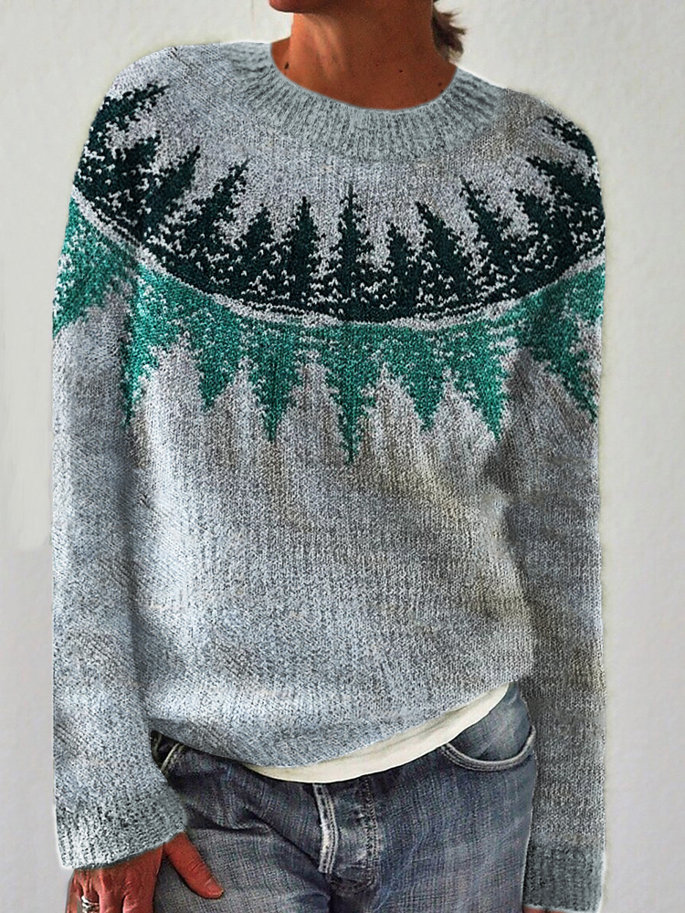 Forest Reflection Inspired Cozy Knit Yoke Sweater