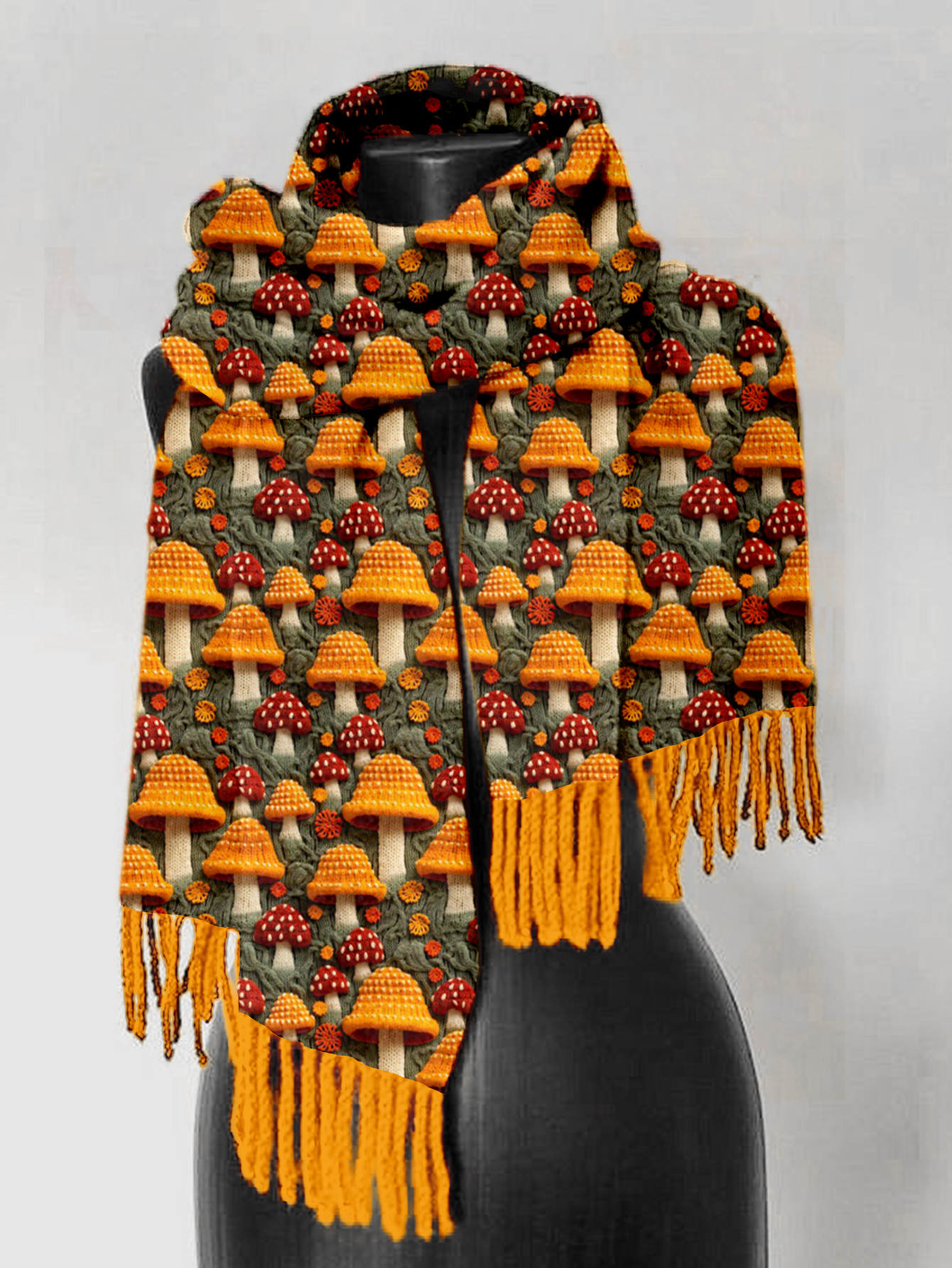 Floral Mushroom Embroidery Art Comfy Tassel Scarf