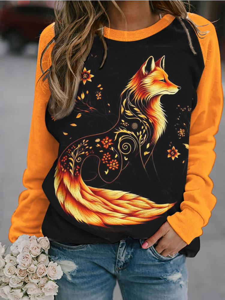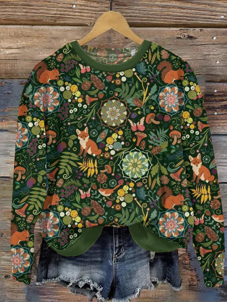 Forest And Fox Art Printing Casual Round Neck Sweatshirt
