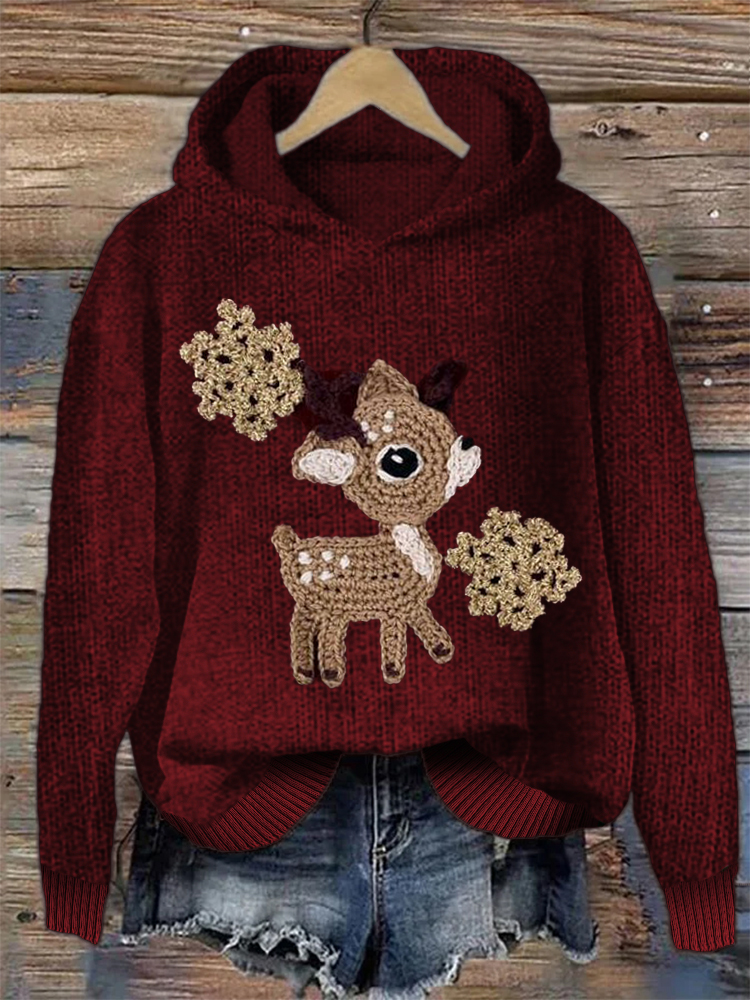 Christmas Reindeer Crochet Art Cozy Knit Hoodie