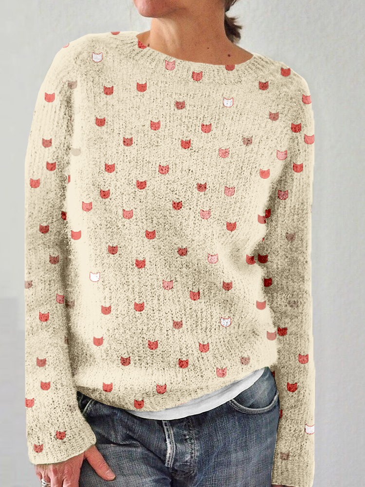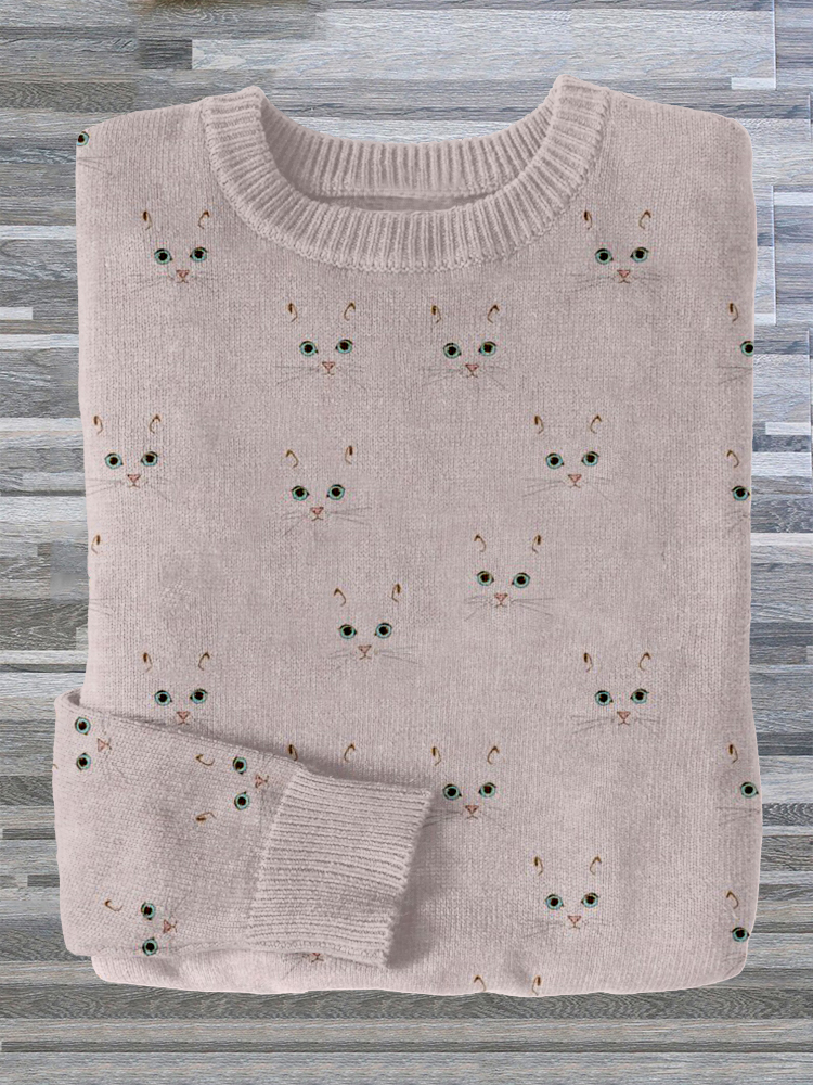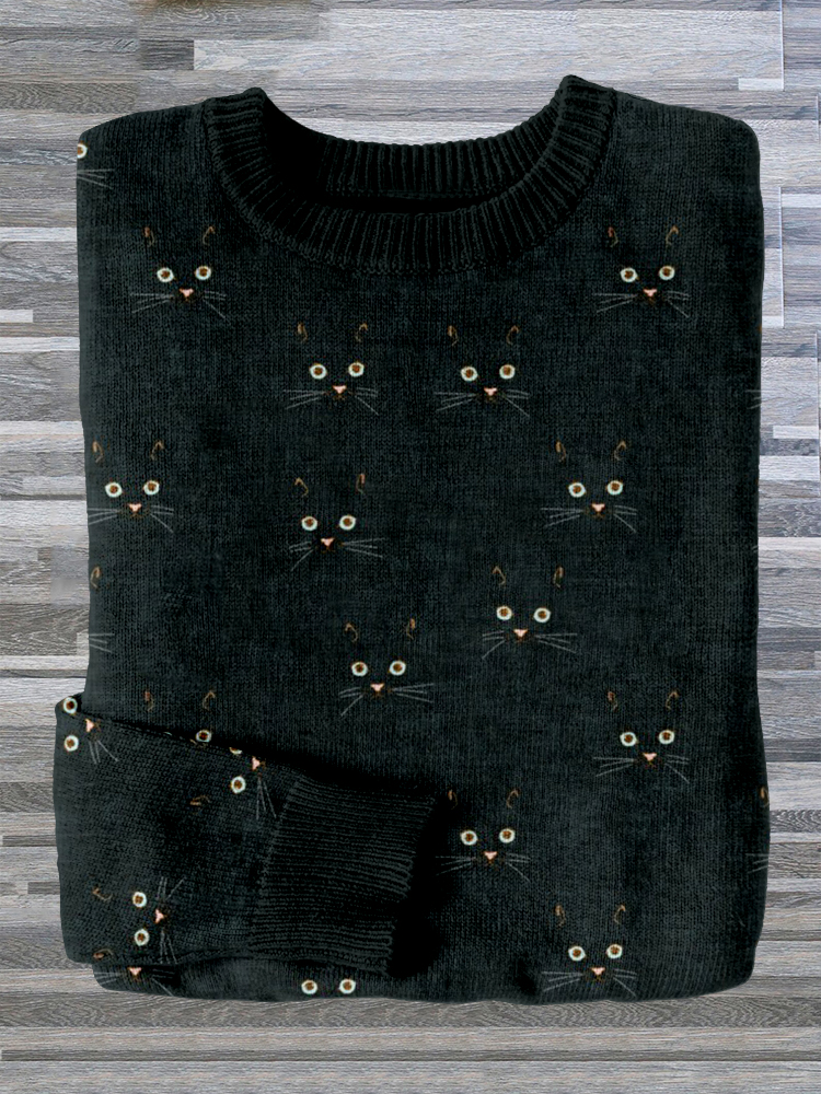 Cute Cat Face Pattern Cozy Sweater