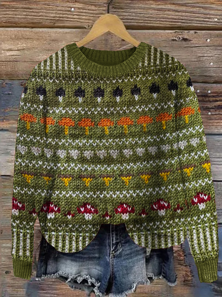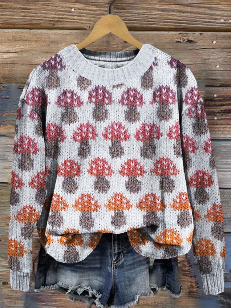 Colorful Mushroom Inspired Cozy Knit Isle Sweater