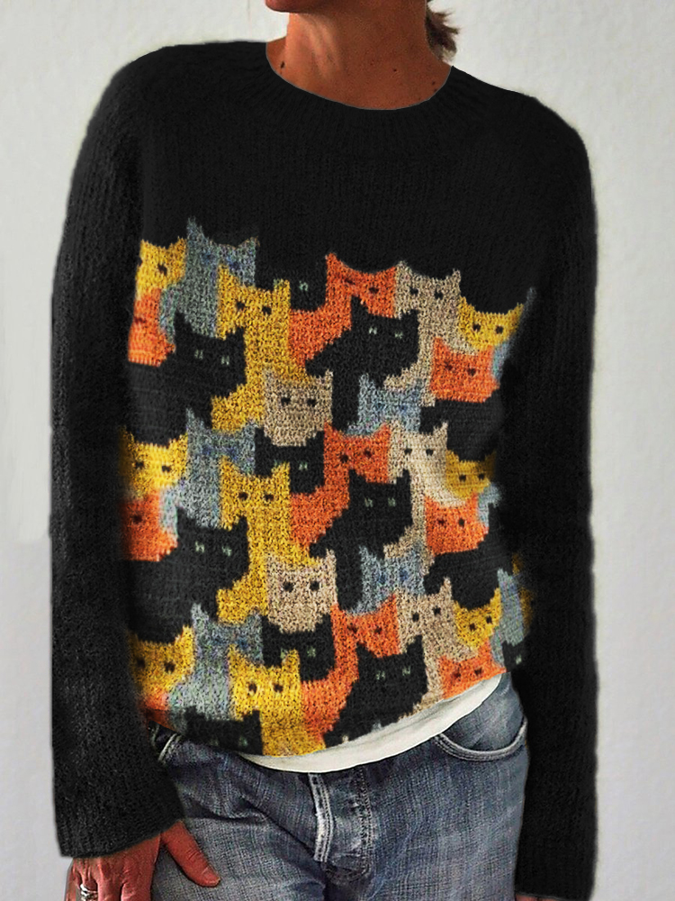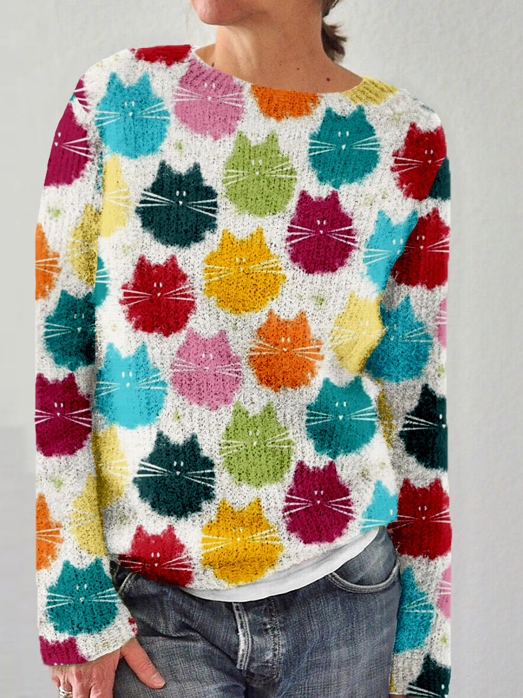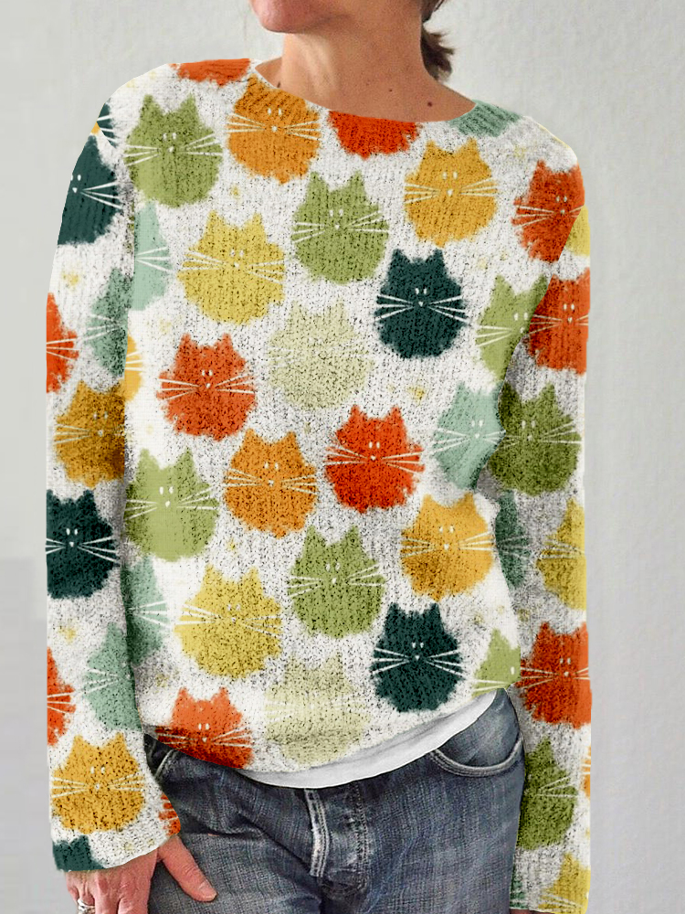 Colorful Cat art Pattern Casual Cozy Sweater