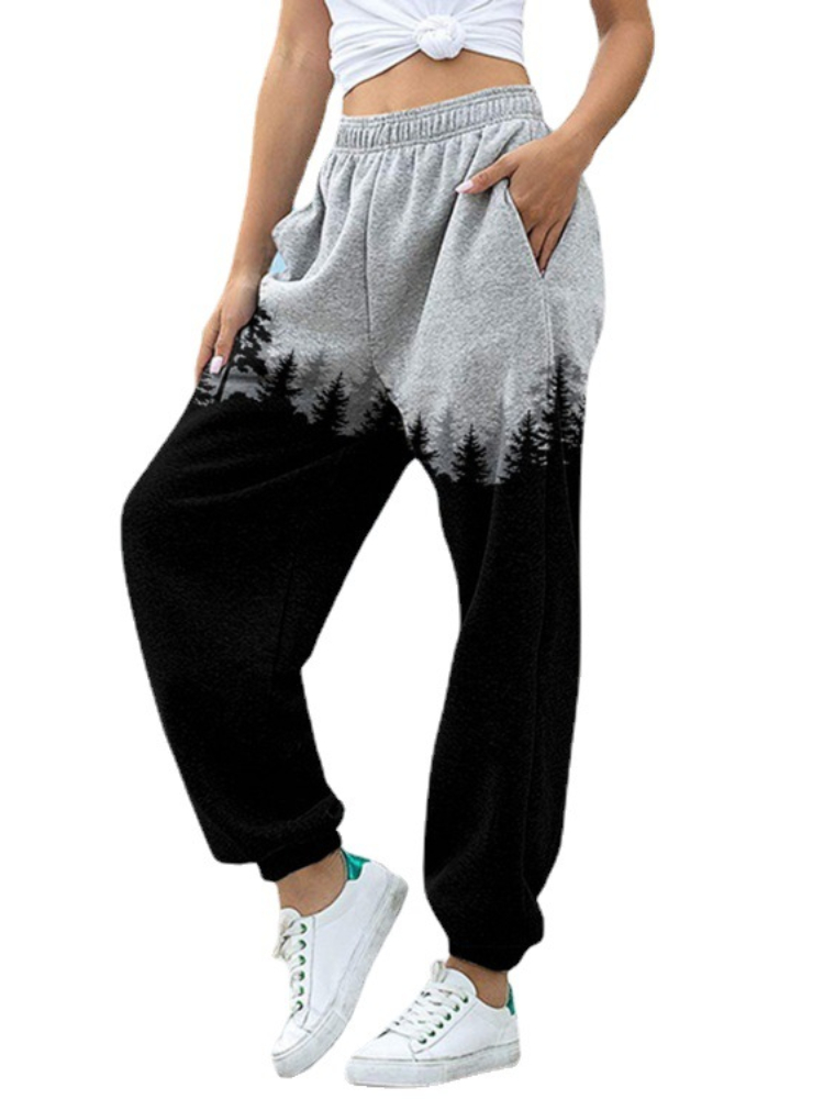 Black Forest Art Painting Elastic Waist Casual Pants