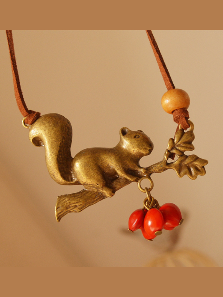 Cute Vintage Squirrel & Red Bean Necklace